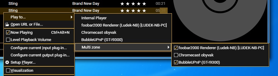 | Description | In version 4.1 we have introduced 0007090: Ability to control remote players via UPnP/DLNA. However, there are two additional feature requests: 1. WMP's "Play to..." allows to manage more players at once, see the third screenshot here: http://gizmodo.com/5146859/windows-7-windows-media-player-12-play-to-and-media-compatibility [^] where every remote player has its own Window with NP and virtual player. Something similar might be nice although I believe that simple "switch" would be enough (where multiple 'Now Playing' lists would be just stored in the memory). Current workaround is to run multiple instances of MM at once, each for another remote player. 2. As Peke suggested in 0007090 it could be also handful to have "multi zone" playback feature where user could select any or all DLNA renderers and/or MediaMonkey Player to stream music to multiple locations at the same time. The problem here is in synchronizing the renderers. Most probably they would be always desynchronized say half a second when streaming the same content (because of buffering, network traffic etc.) | ||||