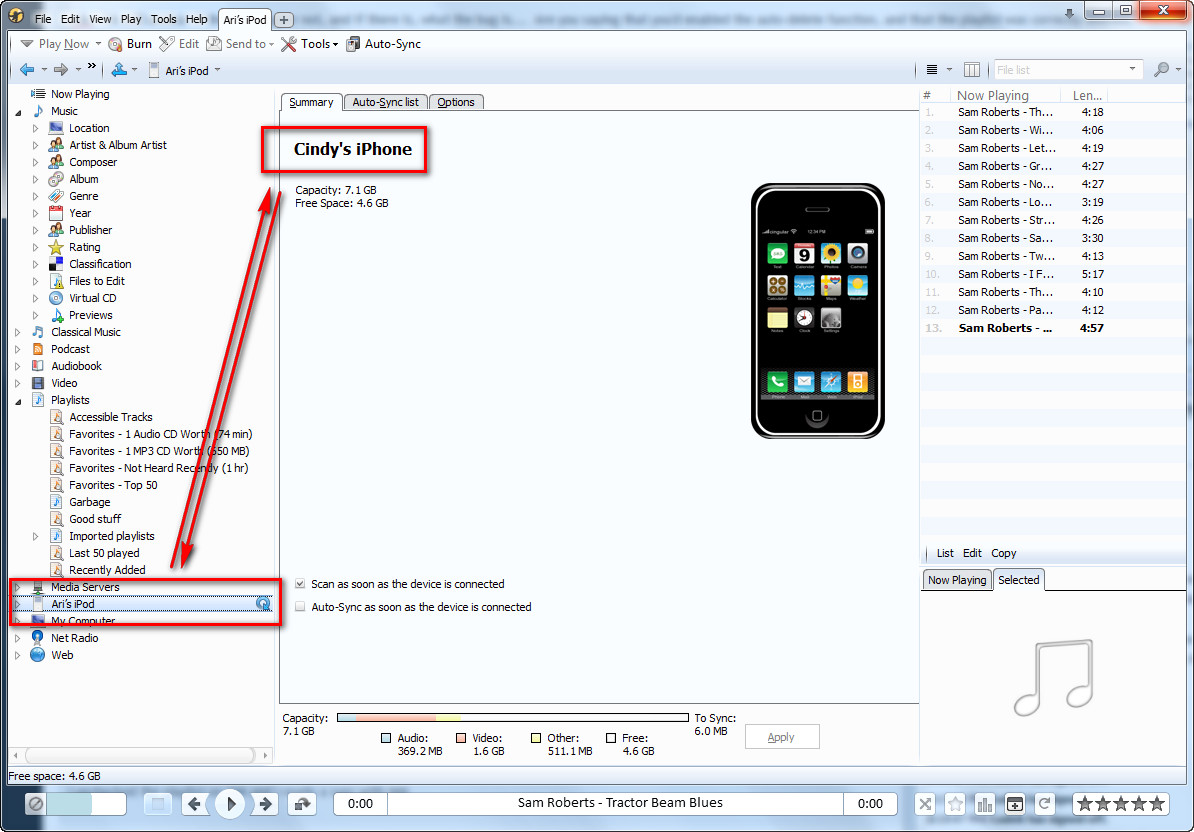 This bug appears to be somehow triggered by running iTunes while the device (an iPhone 3G, iOS3) is connected. Whenever iTunes is run with the device connected, it seems to trigger a change on the device that in turn causes MediaMonkey to exhibit the bug. See the screencast below: http://screencast.com/t/FdtiF1OPWM Note: I've also attached a debug log of the problem (see notes at the top of the log). |