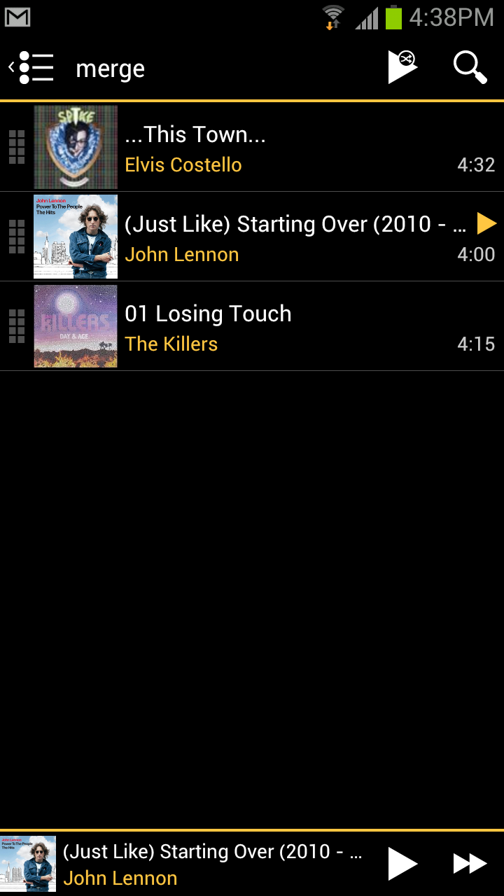 | Description | With the steps below, it is possible to create a single playlist item which has artists from 2 separate songs. Please refer to the screen shots attached Screen 1 - original playlist. From this, "john lennon" is deleted, and "Suede" added Screen 2- playlist state after above Screen 3 - When "merged" item is moved, the songs "demerge", and list of 3 items is shown as expected | ||||