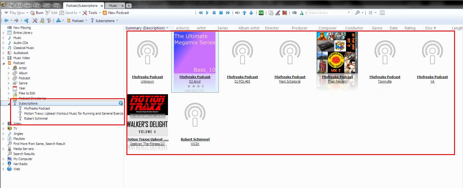 | Description | Most of podcast have Podcast Album Art asigned it could be very very useful to add podcast album art into: 1. Subscription Dialog 2. Load/show in "Art & Details" when selecting Podcast in tree and use it as default album art for Selected/Played Podcast episode unless episode have own Album Art 3. Subcriptions Tree node Root view: Details = All and sorted by PODCAST/ALBUM -> DATE, Album art/AA+Details/ArtBrowser (Should be same as in Album Nodes) -> Show AA for Subscriptions eg. for http://feeds.feedburner.com/Mixfreaks?format=xml attached "mixedfreaks.gif", for http://www.abc.net.au/triplej/listen/podcast.xml an "newMusic.jpg" and only Subscription should be listed like albums not like currently "subscription.jpg" Examples of podcasts are shown in 0011063:0036886 and in description of 0011063 NOTE: this would be most usable in MM8 and MMA while browsing podcasts to visually represent Podcast Album Art. | ||||