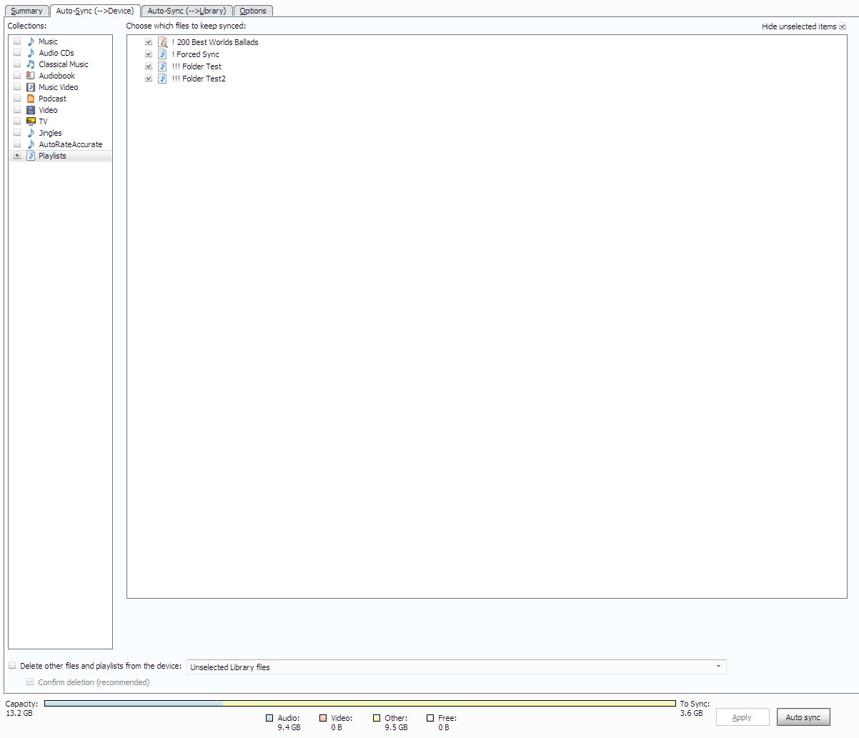 | Description | 1. Profile shows incorrect data on connected device. (Free Space, Audio, other, To Sync info) 2. While Device is Scanning Initialized sync Can't be terminated And MMW appear unresponsive if terminate is selected during (Preparing File List). 3. If Duplicates are selected "to Sync" calculate tracks double. Same tracks are in Auto Playlist and in Static list to sync Attached pictures from MMW and ES File Explorer Showing Free Space. Note /Music/ Folder do not contain and tracks and MMA show no tracks. | ||||