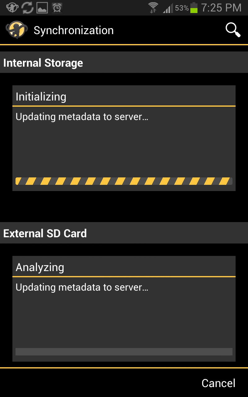 | Description | With a disabled internal memory wifi sync (first one to sync on my device) the sync progress for the external memory is shown in both the internal and external memory area. | ||||