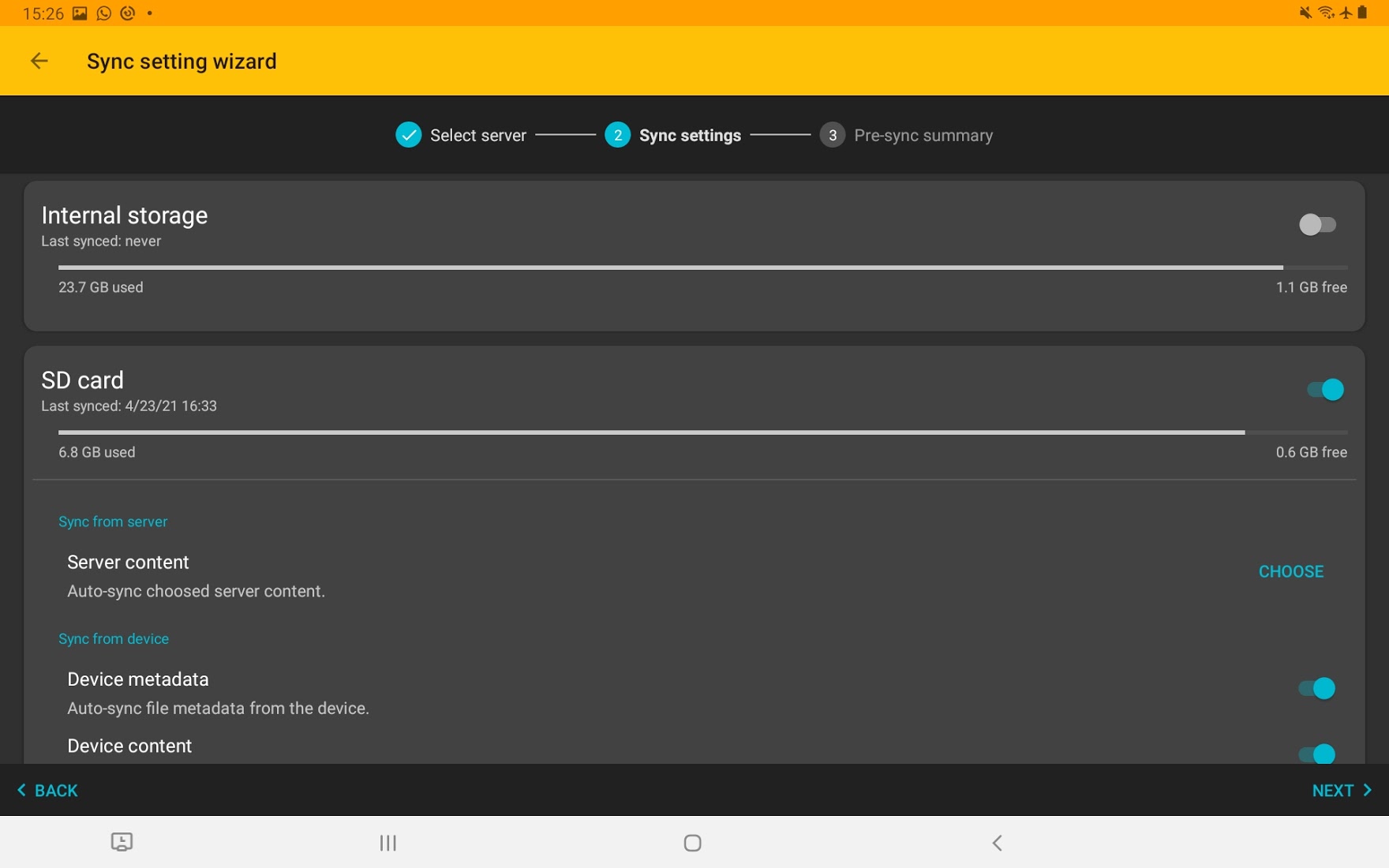 | Description | Current implementation uses a lot of different fragments and dialogs. Simplified wizard using Android's design pattern should be used. It will bring following advantages: 1. using subsequent dialogs is quite dangerous in Android and cause many issues. This caused that code is quite hard to read and extend. 2. It will be easier to go a step back 3. Additional text information might be added to make it much easier to understand 4. Multiple storage configuration might be possible - now one storage is configured only. 5. Different and adjusted layouts might be used for tablet devices I have found simple wizard library here: https://github.com/romannurik/Android-WizardPager It might be quite similar to current implementation: a) search servers - allow add server manually - show help in case of connectivity issues b) show all storages as checklist - allow disable/enable them c) configure all enabled storages - one by one d) sync at the end of wizard All screens will be full screen fragments in wizard's activity. Short additional text might be displayed to explain each step to user. | ||||
