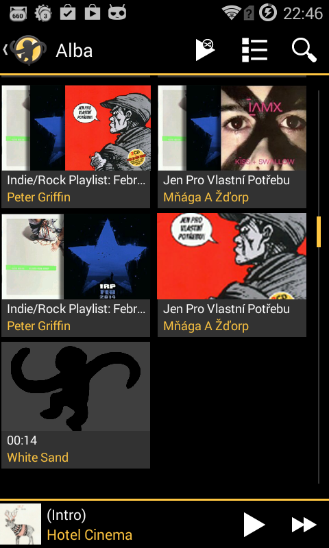 Tested 387. It's working reasonably well except: 1) I would suggest that the icon be moved to the overflow icon (top), since the layout is getting too busy. 2) The settings currently span all nodes (e.g. if the user changes from Art to List for Albums, then the change occurs for Artists as well. This is going to be very annoying for some users. I would suggest that settings should persist per node. e.g. the settings should be independent for: -Albums views -Artists/Album Artist/Artist&Album Artists views -Genres views etc. If this is too much atm, then the settings should minimally persist for: -One setting for Albums views -One setting for all other views besides Tracks 3) This should apply to Playlists as well |