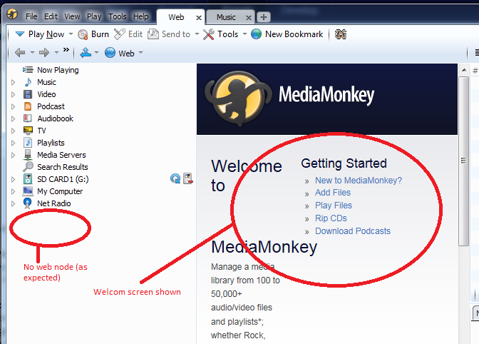 ok, disabled WEB in Tools -> Options -> Library -> Media Tree and reinstalled MMW, result is on the attached screenshot, welcome screen is shown, but no Web node (as expected), I don't understand what the issue is here? |