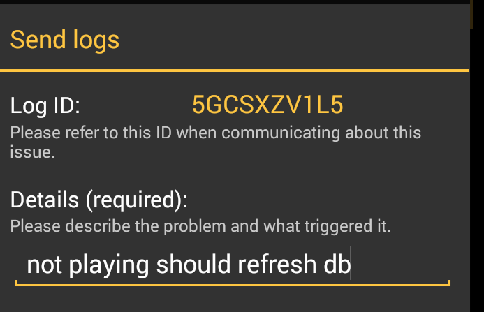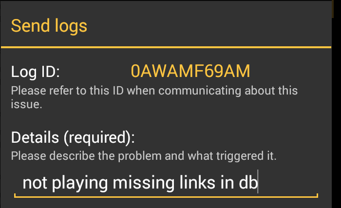 Unfortunately I have only the first log. It is not possible to send more than one log in 5 minutes. I have removed this limitation for user logs - it will be in build 359. In first log I can see that the storage is still removed. It is /storage/sdcard1. Could you please give me details: 1. You have unmounted sd card 2. Tracks should remain in DB 3. You have remounted other sdcard (without these tracks) 4. Tracks were not deleted from DB Is this your scenario ?? If so, please resend me log after storage is remounted and tracks are still visible. |