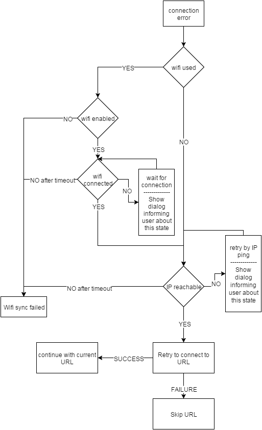 | Description | Now sync and other wifi processes interrupts after two unsuccessful attempts. There are many scenarios (and related complains) where more sophisticated methods are needed. We can implement something like shown on attached diagram. | ||||