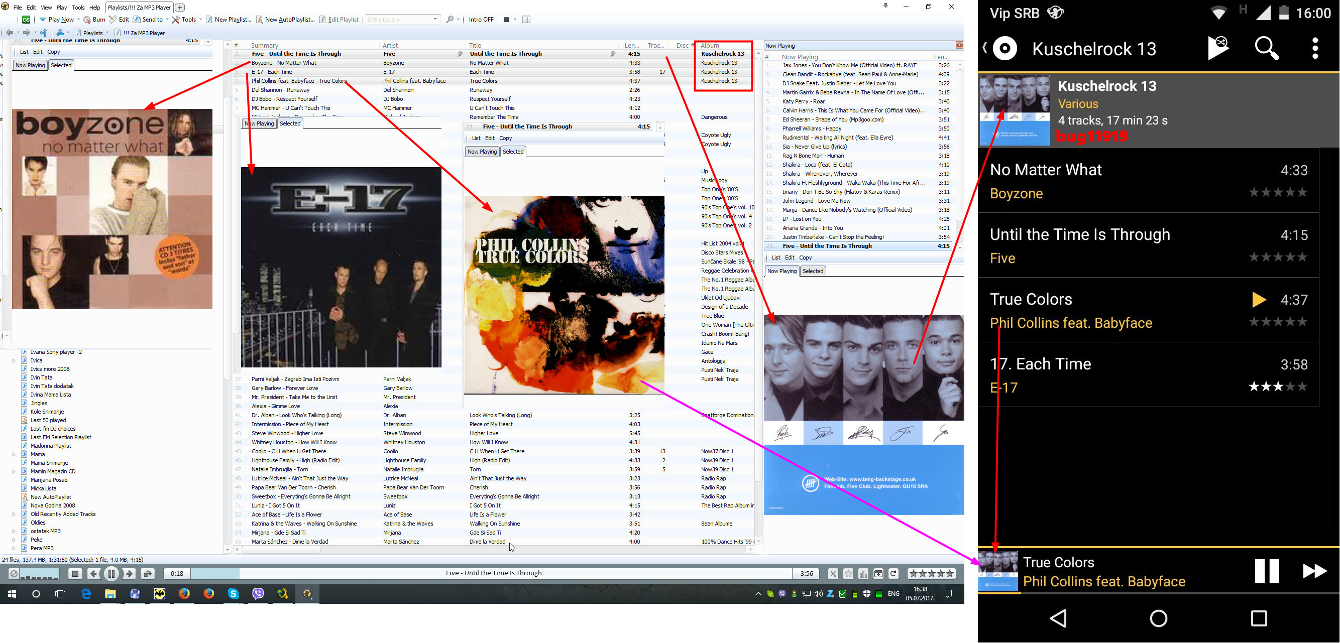 3. As pointed by Rusty, this issue looks like related to 0011919 where Album share common AA and if it is incorrect user wants to delete which lead to different AA (newly searched and found) with old one assigned due the 0011919 which raises the question Which one to save/show eg. If track have Album filled and also have AA for singles release. MMW on the other hand like pointed in picture for each playing track shows its own Image correctly. Sync mask is "\Music\<Album Artist>\<Album>\<Track#:2> $Left(<Artist>,20) - <Title>" so this is long standing issue and and can cause AA search issues (fail search, missed AA) like pointed by Michal in offline testing/tweaking of AA searches, but unproved/not being able to replicate at teh moment. |