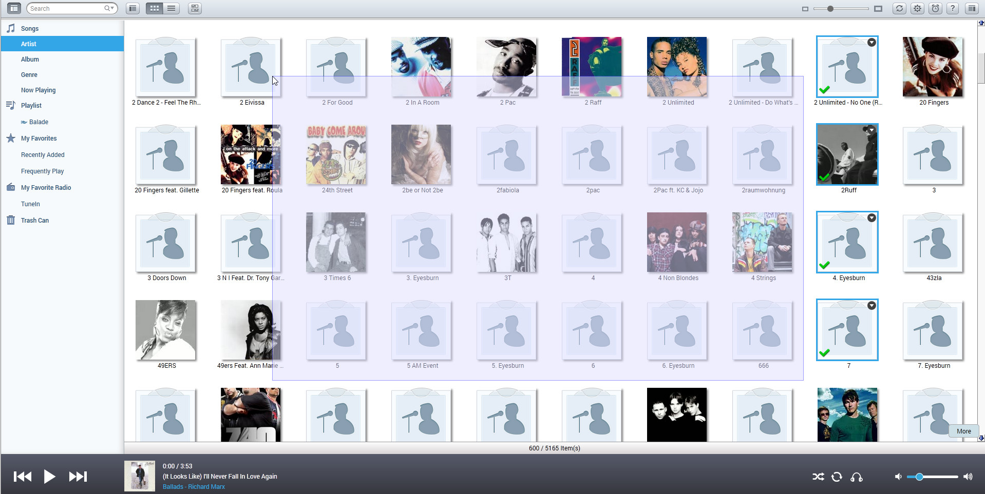 Lasso selection would be nice to have, we should look into it (to be implemented similarly to Windows Explorer and others). |