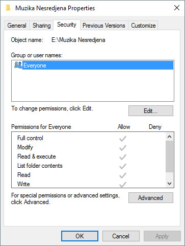 Peke, I guess the elevator was needed because of write access to E:\Muzika Nesredjena\Mix... ? |
