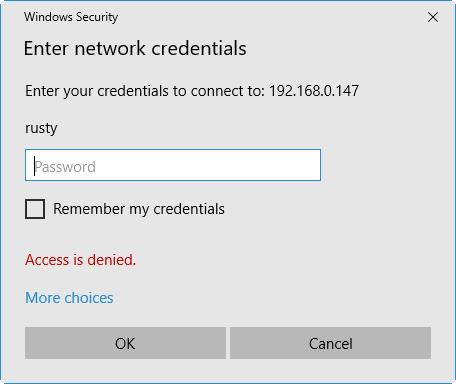 In build 2133, the bug occurs as previously. Just redocumentating with a bit more detail: 1) 1 In the Add network folder dialog, 'Add location' and attempt to expand the entry for (or enter) \\192.168.xxx.xxx --> a) Enter network credentials dialog appears (see attached) even though this PC already is logged into the network b) The dialog indicates 'access denied' even though access hasn't even been attempted (i.e. at this point there's just an attempt to see the folder hierarchy)! c) If the user clicks elsewhere in the UI, then the dialog gets hidden in back of MM and there's no way to get it to re-appear d) if the user enters credentials, then MM5 proceeds to scan the directory |
