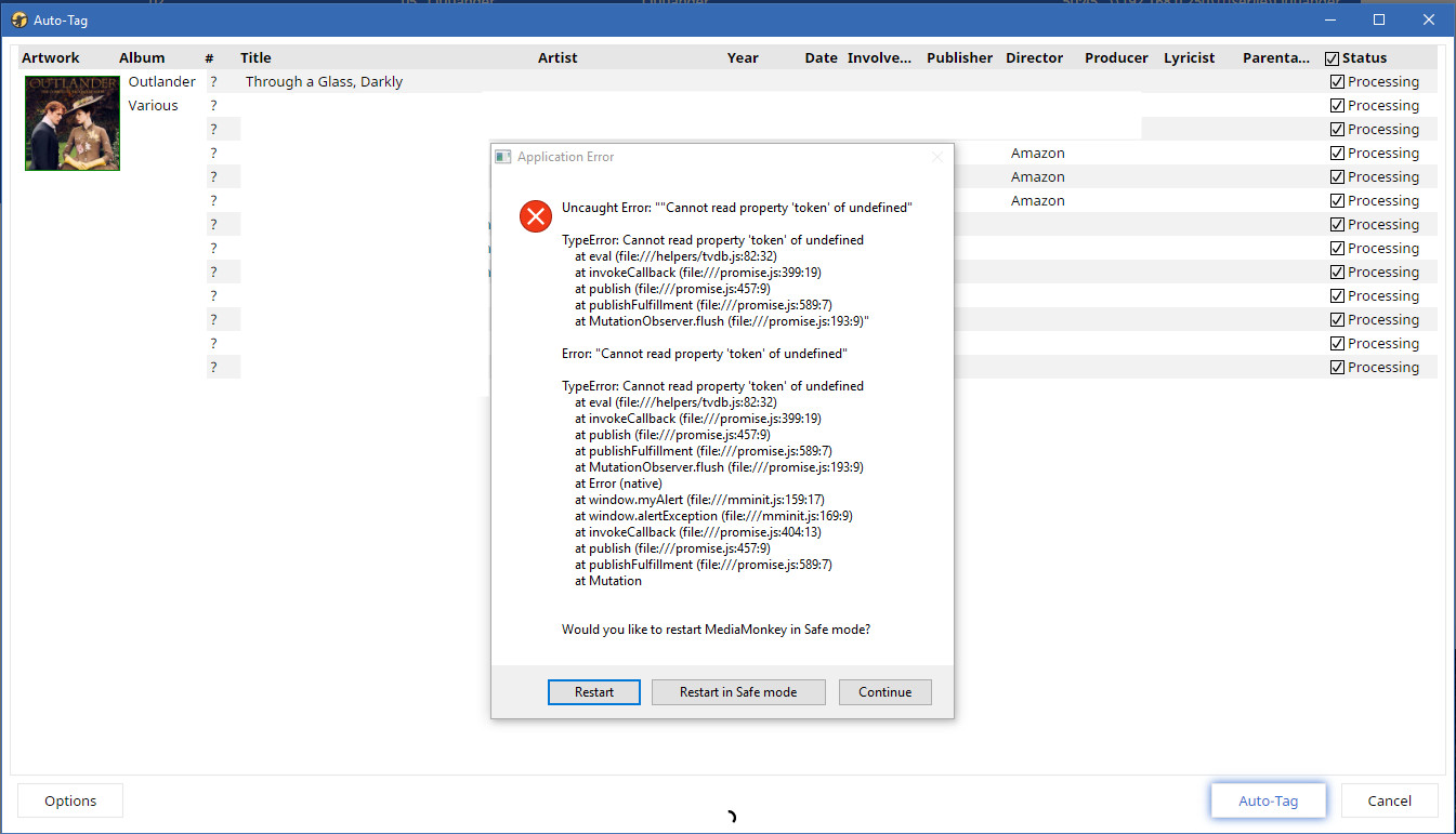 DescriptionIf MediaMonkey is blocked by firewall then apron trying to do auto tag MM crashes.