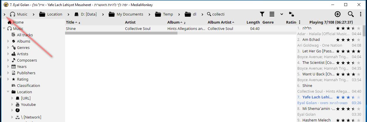 | Description | Using contextual search in some views causes the menu bar to shift, causing commands to be inaccessible. 1 Navigate to Music > Location > D > My Documents > Temp > dl 2 Type 'Collecti' so that tracks by Collective Soul appear --> menu shifts over! 3 Delete the 'Collecti' text in the contextual search bar --> menu doesn't shift back! The way to resolve this is to refresh the view (i.e. switch to another node and back). | ||||