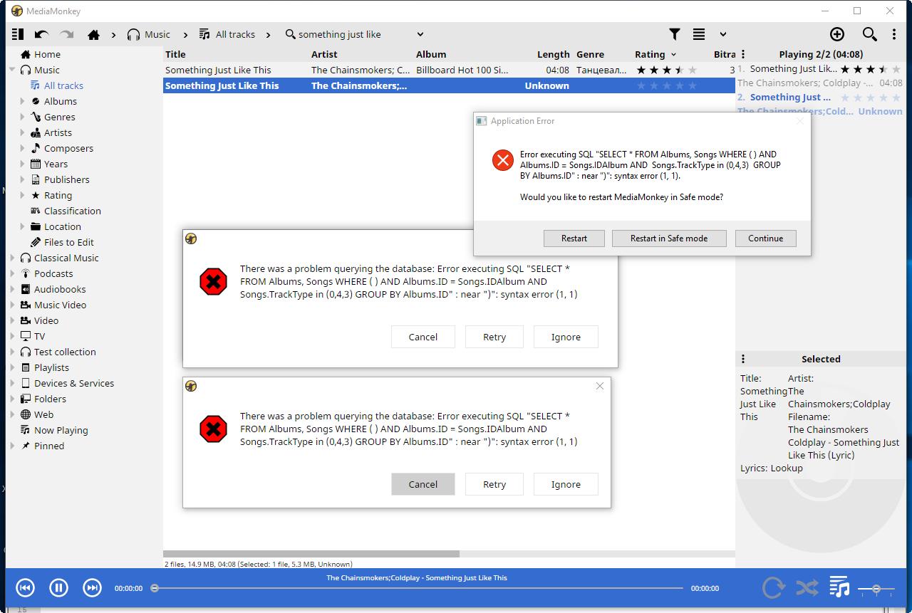 DescriptionUpon attempting to play a track of length 'Unknown' (it was a non-existent OGG file), MM froze.