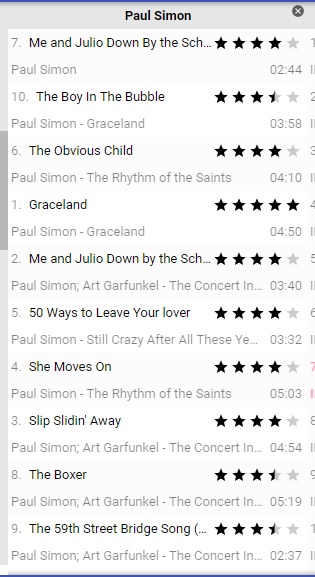 1) I don't see anything bad on your screenshot. All ten tracks are there including the track number 10 (The Boy In The Bubble) that is from the same album as the Track 1 (both the track and the album is called 'Graceland'). So this one looks like a test error? 2) I cannot replicate and cannot force MM5 to show the bad numbers like on your screenshot (by performing D&D in the playlist panel). Were you testing the latest build? Could you please zip, upload and share your Portable folder so that I could try to replicate with your data? Also please include the name of the playlist tested. Thx. |
