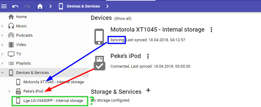 7) 0013697:0046512 behavior do not work See my attached picture where "iPod ..." should be shown and "LGE ..." should not. At least as I agree with 0013697:0046512 there should be color difference in connected devices against last synced devices? |