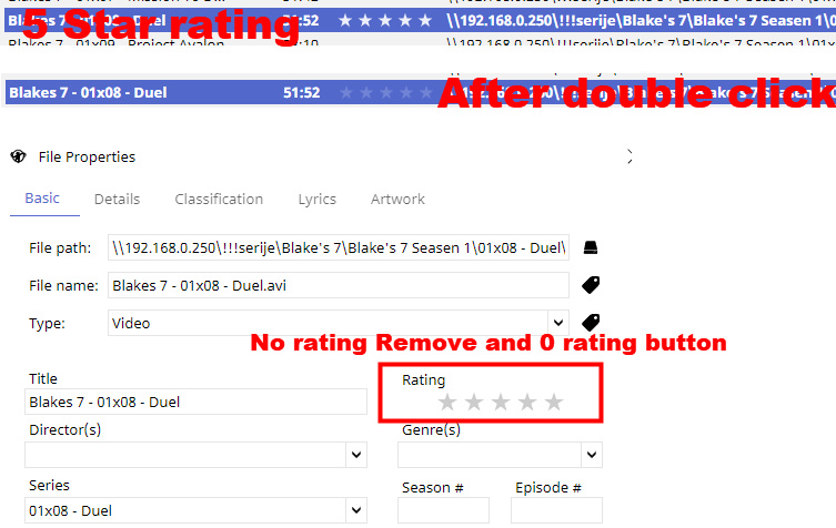 Can you please elaborate implementation as No Remove and/or zero tag Icons is shown in Properties and double click set Zero Rating instead of Remove?