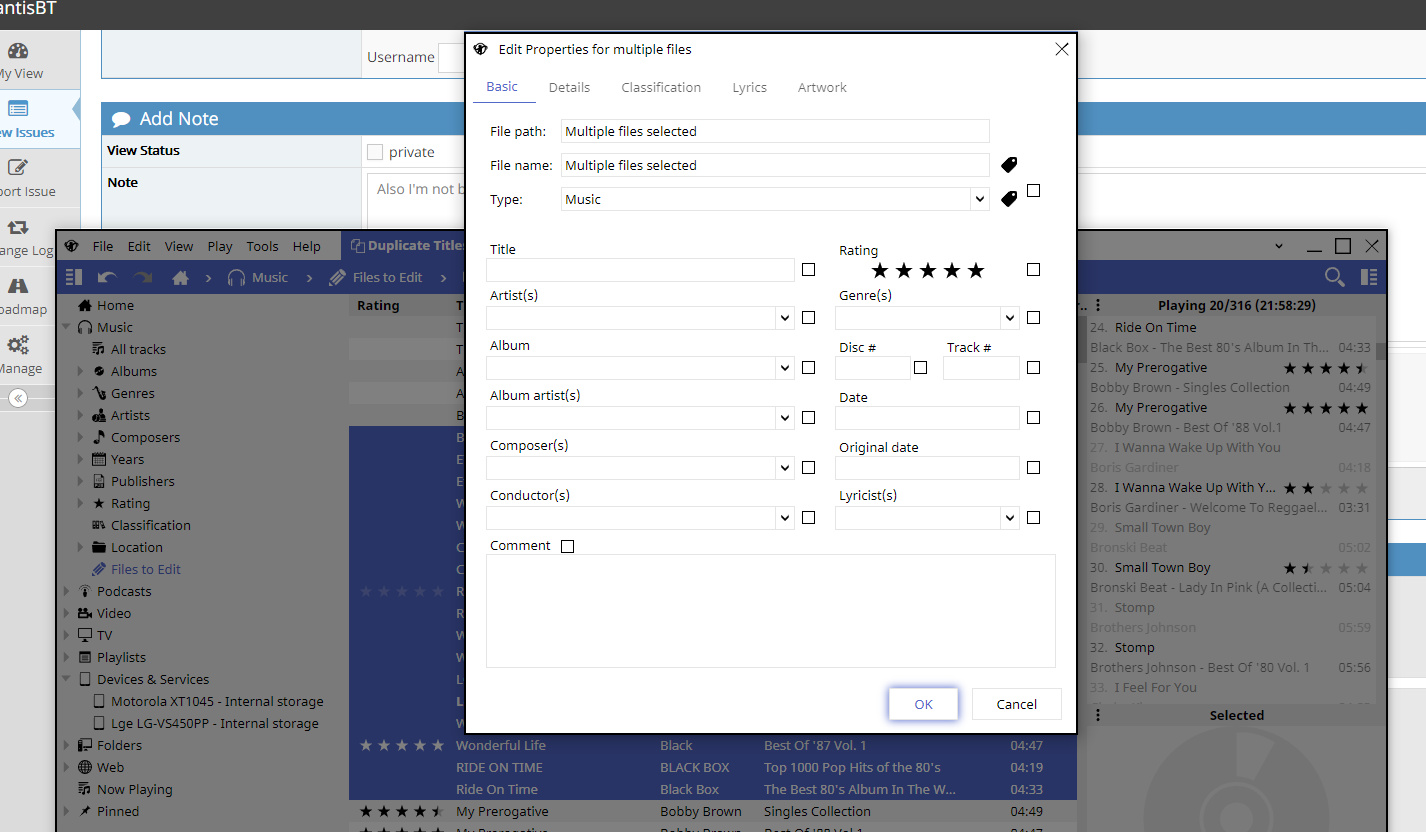 | Description | 1 Select several tracks in MM 2 Right-click Properties --> The properties dialog appears, but the border of the main MM window appears on top of the dialog! Note: strangely, this only happens if a multiple-track edit is being performed. | ||||