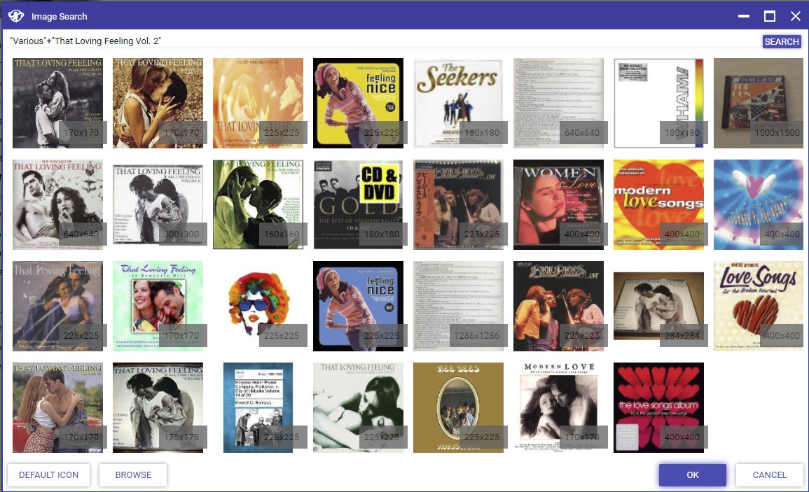 1) double-click chooses the image and closes whole dialog now, it is more comfortable than selecting image and then pressing OK button (which is also possible) 3) not sure, if there could be situation, where multi-select makes sense. This feature is for selecting at least one cover image where none exists, not for searching other images (and it will only rarely find relevant images of more cover types in one searching) 4) Search button initiates Google search, so "Search" makes more sense to me. |