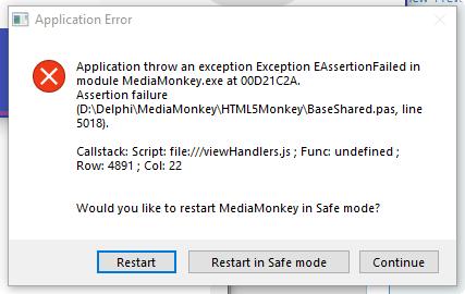 | Description | 1 Run MM5 --> MM starts tagging artwork of 5 files --> MM starts loading podcasts 2 Click Genres node --> Assertion error (see attached). 3 Click OK. --> "runtime error 217 at 01121C2A" --> MM is frozen (sometimes with a white screen sometimes not This type of instability seems to occur quite often when using MM while it's updating podcasts and/or tagging artwork in the background. Debug log attached. Note: this was generated with 2124 but customized (a custom build that Petr had created for testing another issue). | ||||