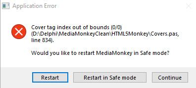 These crashes are the "Cover tag index out of bounds (0/0)" assertions that I have fixed yesterday by SVN revision 32592 (MM5: Fixed possible crash 9DE27918) This can happen upon syncing tracks from from MM5 to MMS for tracks that has some cover deadlinks in the database. e.g. covers that are in the database table covers, but no longer presented in the file tag itself. That is the reason why it was reproducible only by Peke. The reason why Peke wasn't seeing this with 2135 is that he already restarted MM5 and the tracks were already synced to MMS. Otherwise the same would appear with 2135 too. Fixed in 2139 |