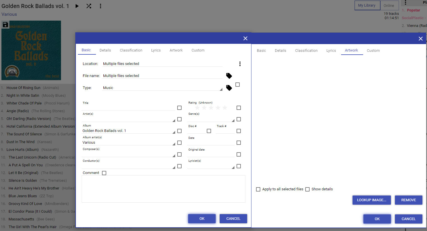| Description | When Multiple Tracks are Edited there are some inconsistency. 2. As Album properties are open Artwork Tab should contained suggested(found) Album Art but it doesn't 3. If Suggested Album art is available Apply To all Selected files should be selected by default | ||||