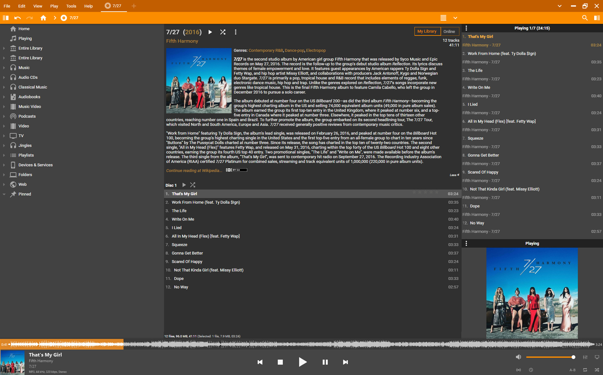 Generally speaking works pretty well, few observations though: a. Waveform seems to be very dense sometimes -- mostly when the window is narrow and track loud => it's almost 100% filled rectangle then. Can we adjust the drawing algorithm, probably so that every pixel don't show maximum, but rather average of what happens there? b. The configuration is a bit hidden imho. I'd consider: b1. Does it make sense to show it in the main 'View' menu? b2. I think that we can make it enabled for new MM5 installations? So that users know about it and only disable it if unwanted. b3. Options\Layout could have 'Configure' icon next to the Player item, which would show the Player customization pop-up menu? Michal, can you please note unfinished parts of this issue to another (new) one? I suppose that we'll defer them to MM ~5.1. |