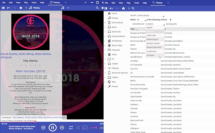 | Description | Multi Value fields like Artist can't be searched for existence of multi value eg. Artist = is Known = More than 1 Expected That we have option in Search Criteria to filter tracks that only have Multi values. | ||||