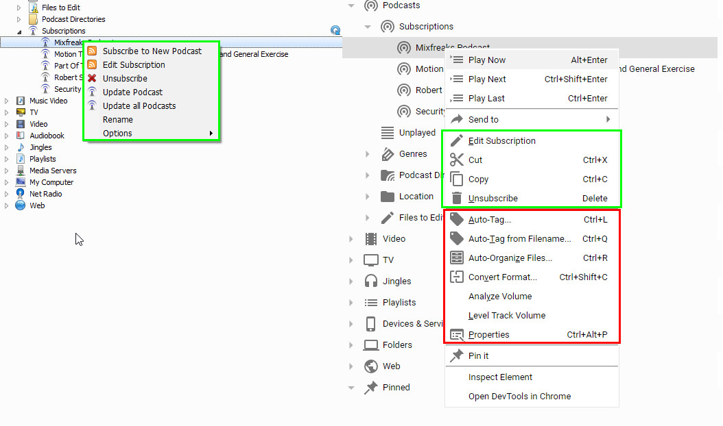 Description1. Unlike MM4 in MM5 Podcast Context menu is missing crucial options like single podcast update (Green)
