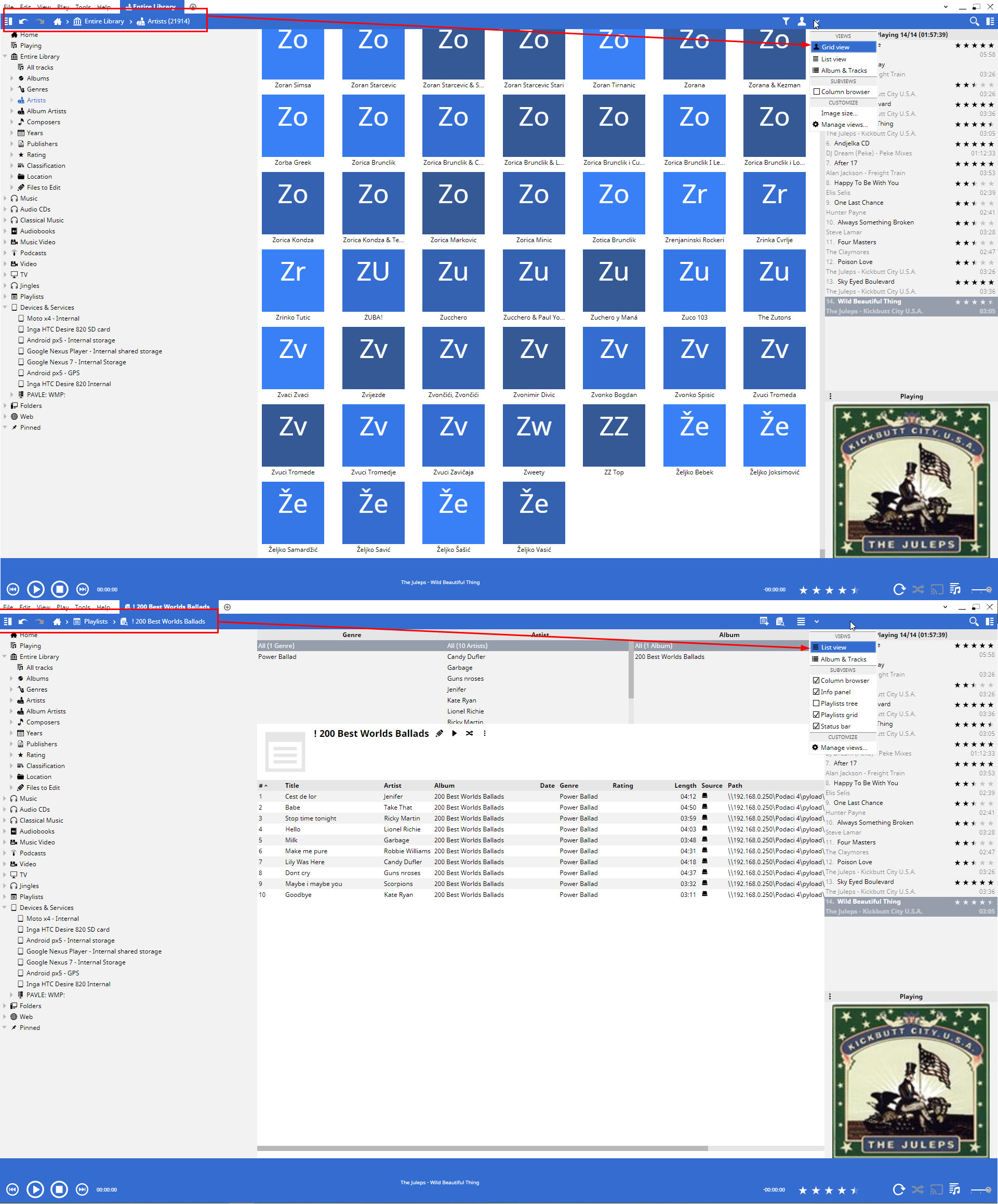 | Description | On Larger Playlists/Auto-Playlist there is a benefit by adding Grid View to better navigate results. Also it could be useful to be able to select base metadata for Grid View eg. artist/Album Artist/Album/... | ||||