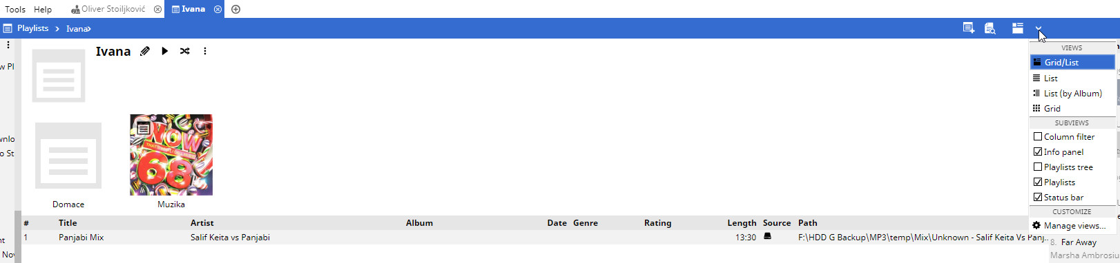 8. OK, implemented the horizontal line separator in 2228 Note2: OK, implemented in 2228 3a) ok, makes sense, changed the terminology to "Tree (Playlists)" 3b) ok, makes sense Note1: You haven't written what do you think about adding "Grid (by Album)" view to playlists, but because some users are seeking for it (and it was in MM4 too) then there is probably no downside adding it. So I added it in 2228 together with the "Browser" view that is the default. 4a) Added in 2228 4b) OK, added 'Status bar' as sub-view also for location/folders (in 2228). |