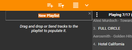 | Description | During testing #12355 it functions correctly, but there are some tweaks we should consider: I) New Playlist as it is not focused it is put in play on tree making it difficult to locate when having large number of Playlists and user needs to scroll to be able to D&D tracks to it (there is no benefit of #12355 implementation). SOLUTION: Put Newly created playlist Top Of root playlist till view is refreshed (eg. tree collapsed/expanded) as that way user can easily find them and use D&D as explained in #12355 II) new playlist name is always "New Playlist" and user needs to loose focus in order to Rename it, as it is not focused and when (1.) gets fixed it should Auto Init Rename of newly created playlist so that user do not end up with multiple "New Playlist" entries in tree. NOTE this do not affect Auto Playlist as they are Focused on creation, maybe we can also consider Auto Init of edit playlist name on creation so that user needs to confirm it (with Enter Key) | ||||