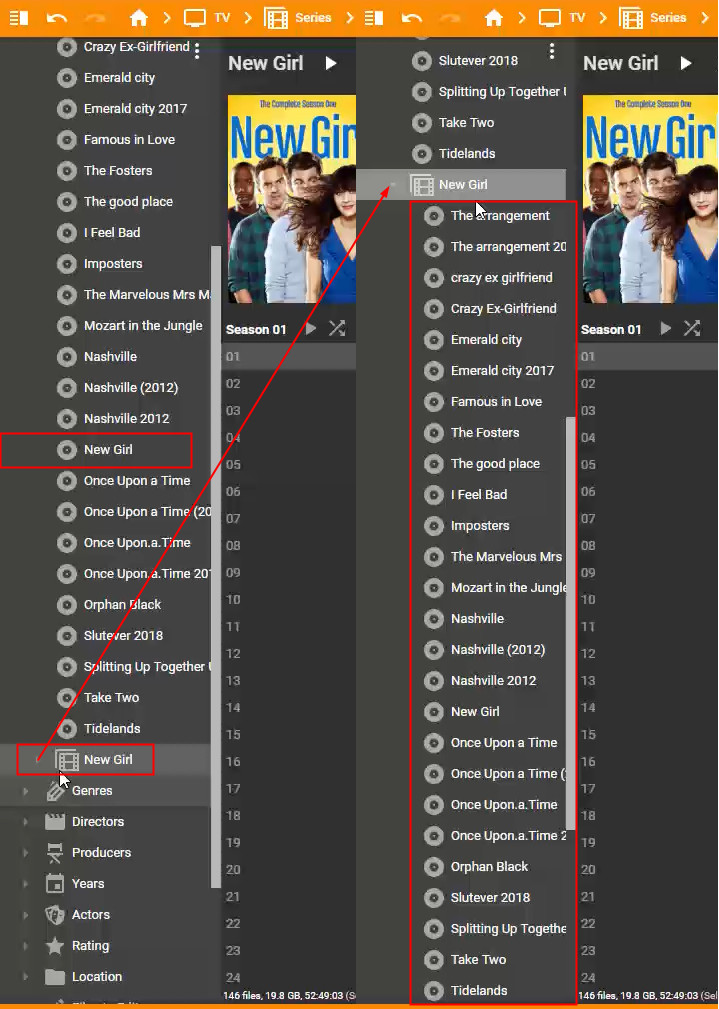 | Description | Navigating TV Series with Show all Subnodes enabled end with wrong subtree and miss generation of Subnodes. 1. Expanding series Show all Series listed but per icon it looks like they are handled as Music Albums instead of TV Series eg. Have CD Icon (Video 00:00-01:20 while I was trying to make it show with correct icon) 2. Even when detected correctly (eg. have proper TV Series Icon) Old node is not removed (Video from 01:20) 3. When properly detected TV Series show Expand Icon to see Seasons it just copy context from Root Folder (Video from 01:30), expected that Only list of seasons are Shown. Test Mote: Use my MM5.DB from FTP uploaded for bug16301 | ||||