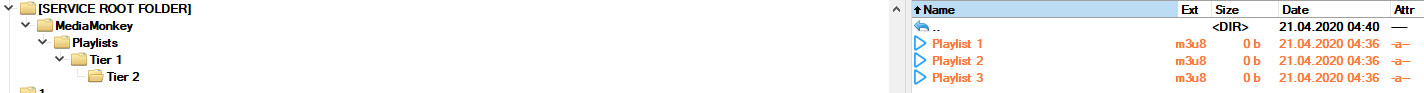 | Description | Many Services do not support Playlist at all or Playlist hierarchy (Tested on Google Drive, DropBox, One Drive Online services, Windows Desktop Apps, for the services and using QNAP Hybrid Backup https://www.qnap.com/solution/hbs3/en/ ) Currently only when Service is accessed with MediaMonkey then MM reads "[SERVICE ROOT FOLDER] > MediaMonkey > Meta_Files > v3 > main.db.zip" and all is imported/show correctly, but when user wants to remotely access/sync data on different PC/Device that do not have MM installed then all playlists are lost. Solution would be that MM Sync M3U8 Playlists (FORCED RELATIVE PATH) using Folder hierarchy To simulate MM Playlist Hierarchy. If This would be implemented then Service "Sync profile" Options are missing "Playlists" where user can set M3U8 Format to set Linux or Windows format of folder separator eg. "/" or "\" NOTE that "HBS 3 Hybrid Backup Sync" once synced explained folder structure, Playlists and files allow QNAP Music Station app can play the files and import Playlist. Expected behavior would be if not supporting Playlist hierarchy structure to at least sync Playlists like it "Local folder" Service. | ||||
