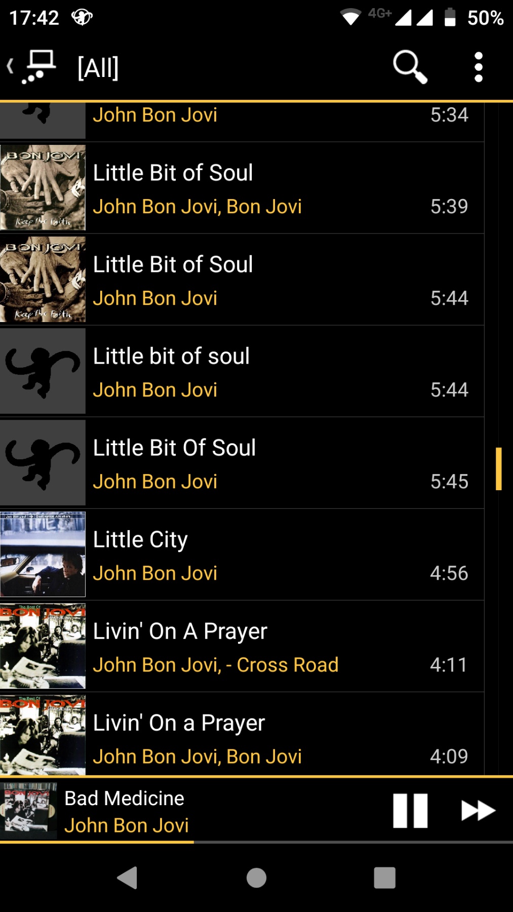 | Steps To Reproduce | Using My DB from FTP 1. Connect to MM5 using MMA UPnP browser 2. Go to Music -> Artist -> John Bon Jovi 3. Only two albums and total of 23 tracks is shown 4. Tap All and all 521 tracks are shown and playable (Same number of tracks are Under Music -> Artist -> John Bon Jovi in MM5) Images showing the issue is attached. | ||||