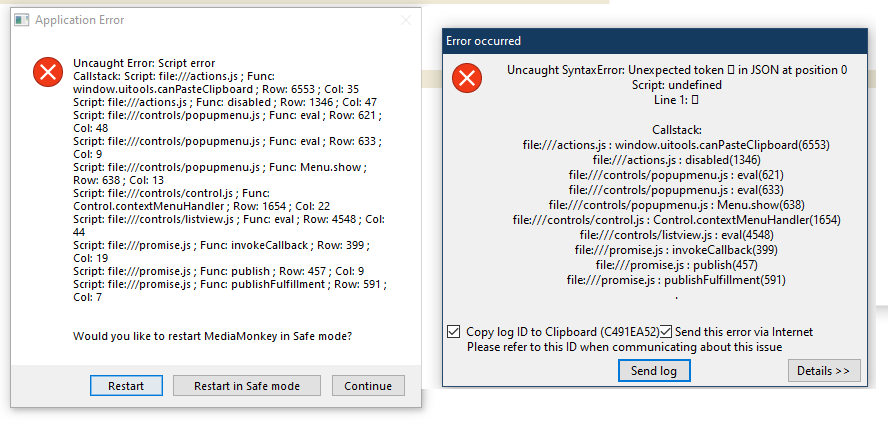 | Steps To Reproduce | 1. Make MM4 and MM5 open at same time 2. Switch to MM5 3. Use context menu to copy few selected tracks in MM5 4. Switch to MM4 5. Use context menu to copy few selected tracks in MM4 6. Switch to MM5 7. Try to use context menu to copy few selected tracks in MM5 (CRASH) 8. Send crash logs (2 in my case) 9. Context menu opens -> Select copy (WHOLE MM5 crashes and Restart dialog can't be clicked, resulting in White screen of death) | ||||