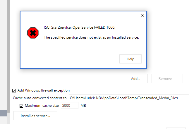 | Description | 1) Install regular build 2288 (not portable) 2) Go to Options > Media Sharing and click [Install as service...] 3) Accept the UAC prompt and enter your account credentials => error: [SC] StartService: Open service failed: 1060: Specified service does not exist as an installed service Reported at: https://www.mediamonkey.com/forum/viewtopic.php?f=30&t=97938 | ||||