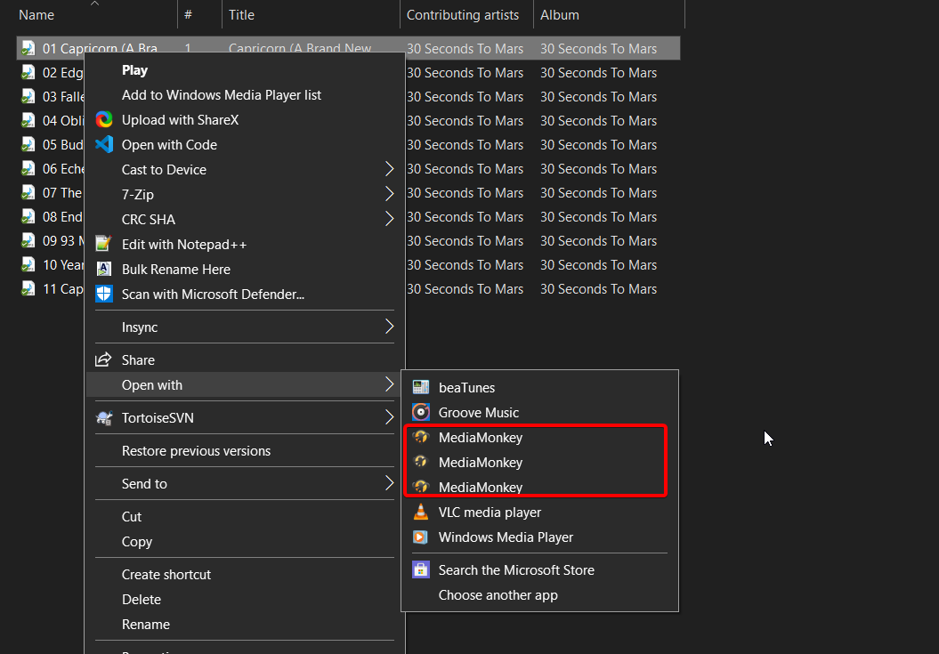 | Steps To Reproduce | 1) Open With>Choose Another App>More Apps>Look For Another App On This PC> 2) Choose portable/MediaMonkey.exe 3) MediaMonkey 4 opens the file. Occurs even if another app (e.g. Windows Media Player) is set to be the default to open that filetype. | ||||