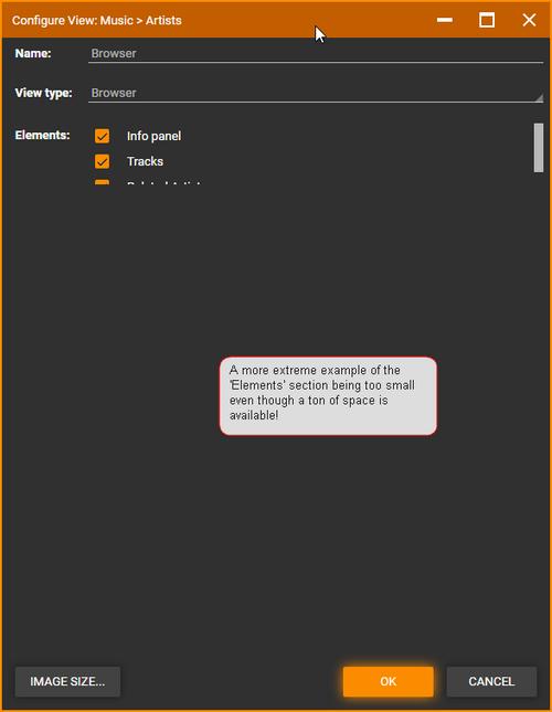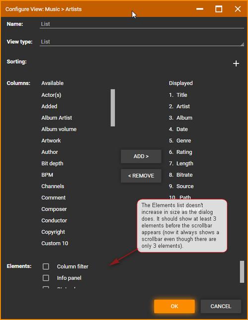 | Description | When increasing the height of the Configure View dialog the Elements section has lots of blank space, while the Columns section still shows scroll bar. | ||||