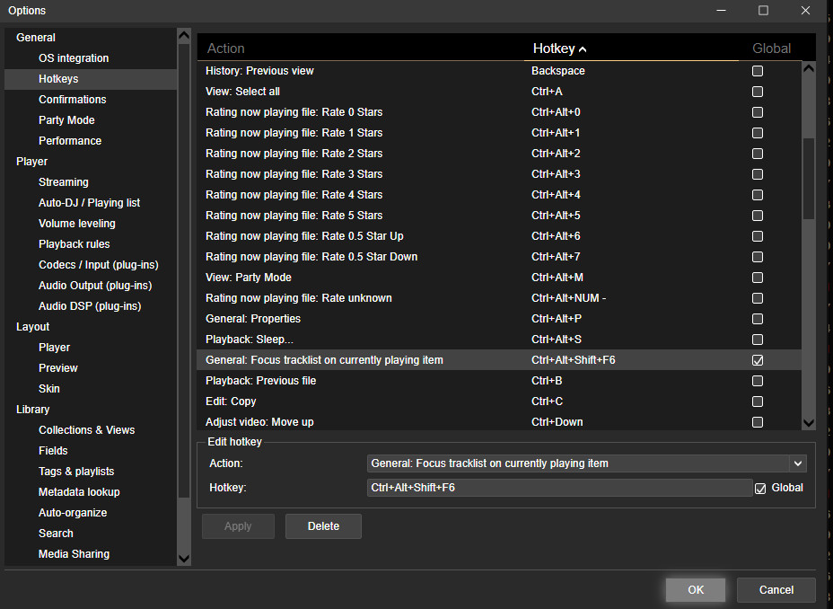 | Description | Assigning action General: Focus to currently playing track to CTRL+ALT+SHIFT+F6 and Setting Global flag, then scrolling Now playing out of current track and pressing Hotkey fail to focus track in Now Playing and in Playing node (list) if active. |