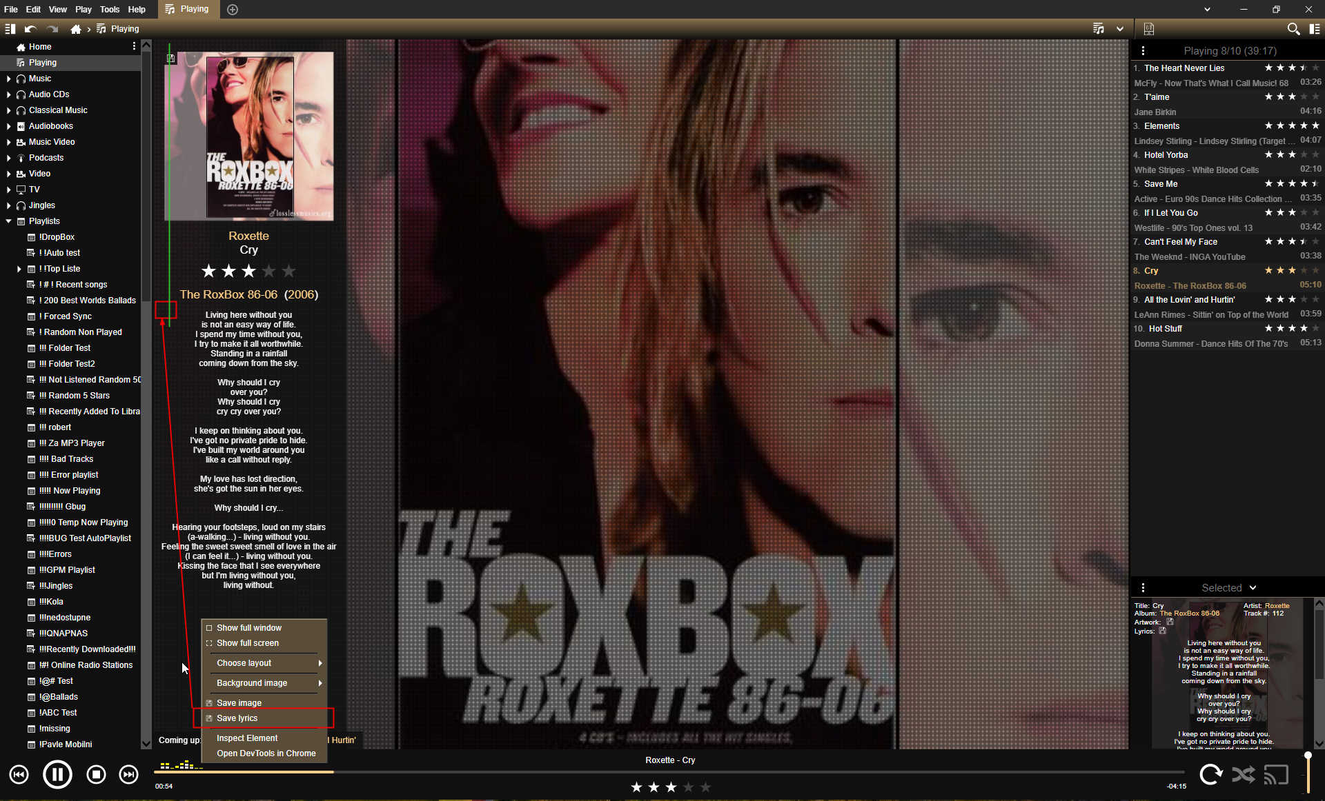 | Summary | 0017635: Playing: Album Art and Lyrics Context Menu do not offer save | ||||