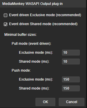 Reopen new steps to reproduce: 1. Set MM5 Volume to 10% 2. Set WASAPI not to use Exclusive mode. 3. Play track and make Volume increases/lowers with moving of slider 4. keep track playing -> Right click -> Options (Player) 5. Set WASAPI to exclusive mode (Advanced settings pic attached. NOTE that setting works on my Focusrite Solo 3rd Gen in 192/24 output) 6. Press OK -> Playback will stop -> OK on options 7. Play track Volume is on 100% and volume slider do not work 8. keep track playing -> Right click -> Options (Player) 9. In WASAPI disable exclusive mode -> OK -> Playback will stop -> OK on options 10. Play track Volume is on according to volume slider position. |