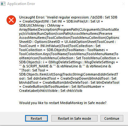 | Description | Convert VBS -> JS crashes MM5 on some scripts like https://www.mediamonkey.com/addons/browse/item/externaltools/ Crash LOG ID: 14D1FC2F | ||||
