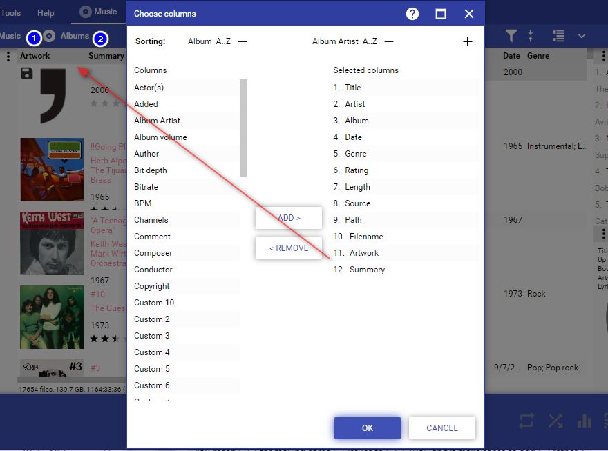 | Description | As Artwork and Summary columns are not movable and they are first two in List by album they should be pinned to top of Choose column list | ||||