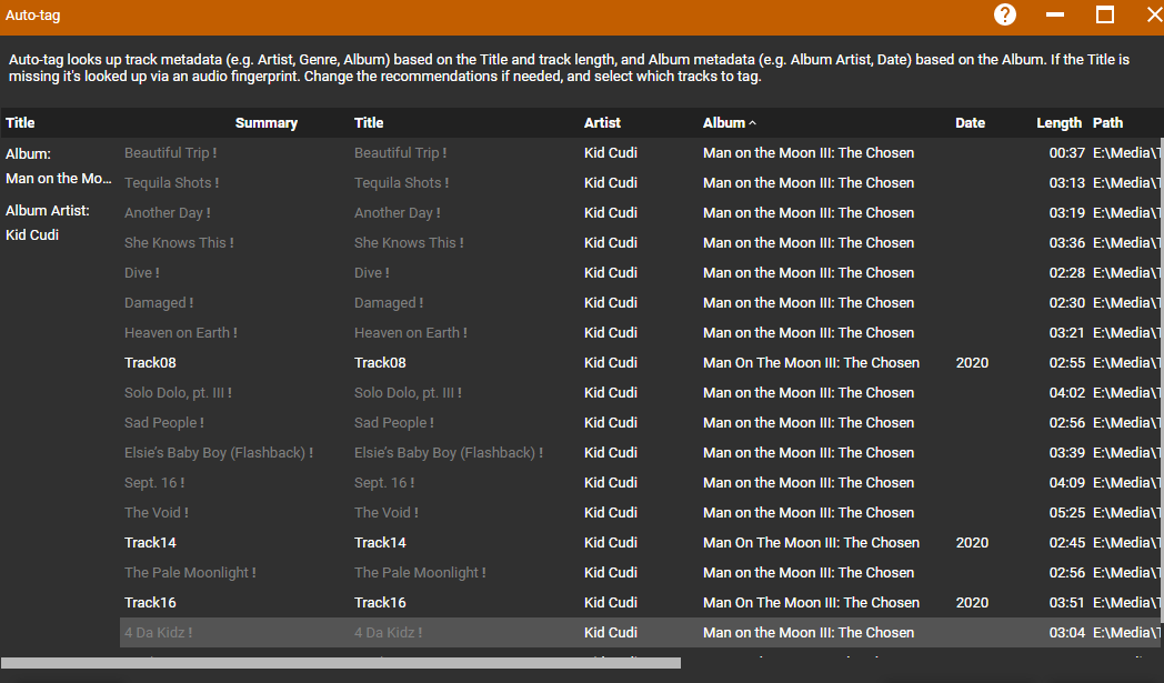 | Steps To Reproduce | 1) Using Auto-Tag with Title initially disabled 1 Open Auto-Tag 2 Enable Title --> Added as first column showing Artwork as data, Summary became empty while Artwork showed Title data 2) Removing second column causes other columns to disappear 3 Enable Actors 4 Disable Title 5 Disable Actors + repeat --> Note that Actors remains showing as enabled in recently used, everytime disabled another column disappears | ||||