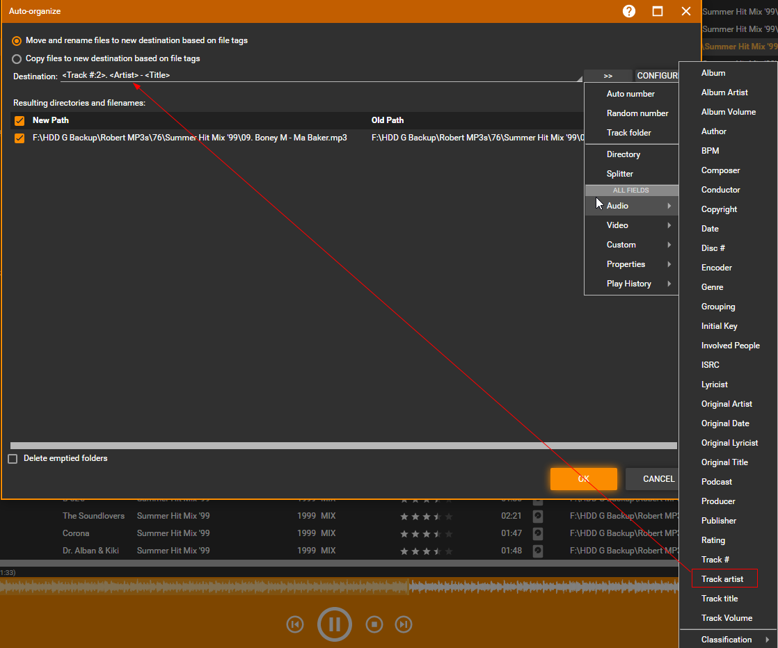 | Description | Tag Names inconsistency can be found in multiple parts of MM. For example tag "<Artist>" is use everywhere except in >> Menu that should help user create Destination masks and it is classified under "Track Artist" which adds confusion. I guess expected name should be "Artist (Track)" | ||||