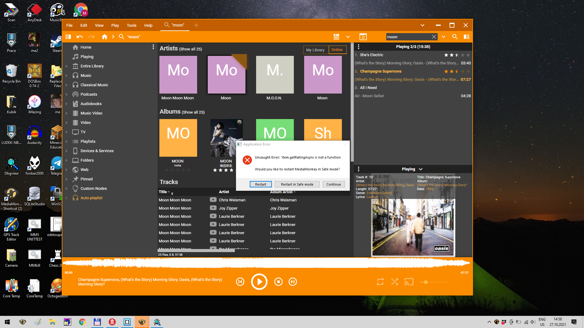 | Description | 1) Ctrl+F and type "moon" 2) Click [Online] to switch to online/musicbrainz search => crash " item.getRatingAsync is not function": https://www.dropbox.com/s/3poby8c1yuous82/Screenshot%202021-10-27%2014.58.38.png?dl=0 | ||||
