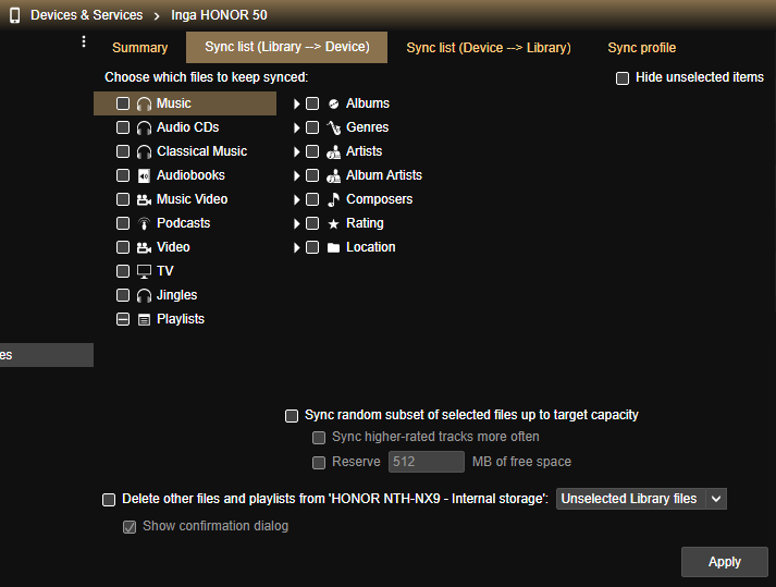 Originally I could not replicate but later I realized that the steps needs to be: 1) Switch to the [Sync list (Library -->Device)] at first to "cache" the old name 2) Go back to the Summary page, change the name and click [Apply] 3) switch again to [Sync list (Library -->Device)] => the old name is still cached 4) press F5 to refresh. => new name appears Sounds as a tiny refresh issue to me. |