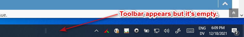 | Description | In build 5.0.2.2528, the MicroPlayer doesn't work. Upon enabling it, a blank MM Toolbar appears in the tray (the controls don't render). Moving the toolbar or changing the size of the taskbar has no effect. Installing 5.0.1 --> it renders correctly. Note: - Drakinite indicates that the issue was introduced in build 2501. - Peke indicates that the issue was not observed prior to the most recent update to windows https://support.microsoft.com/en-us/topic/december-14-2021-kb5008212-os-builds-19041-1415-19042-1415-19043-1415-and-19044-1415-b46200db-74c3-450e-b200-51013957312a | ||||