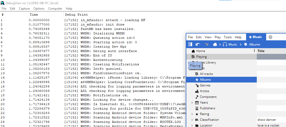 Re-opened: Tested https://www.mediamonkey.com/beta/MediaMonkey_5.0.3.2611.exe and it still output messages from in_mfaudio, WASAPI, WMDM, iPod -- so something is still screwed up. |